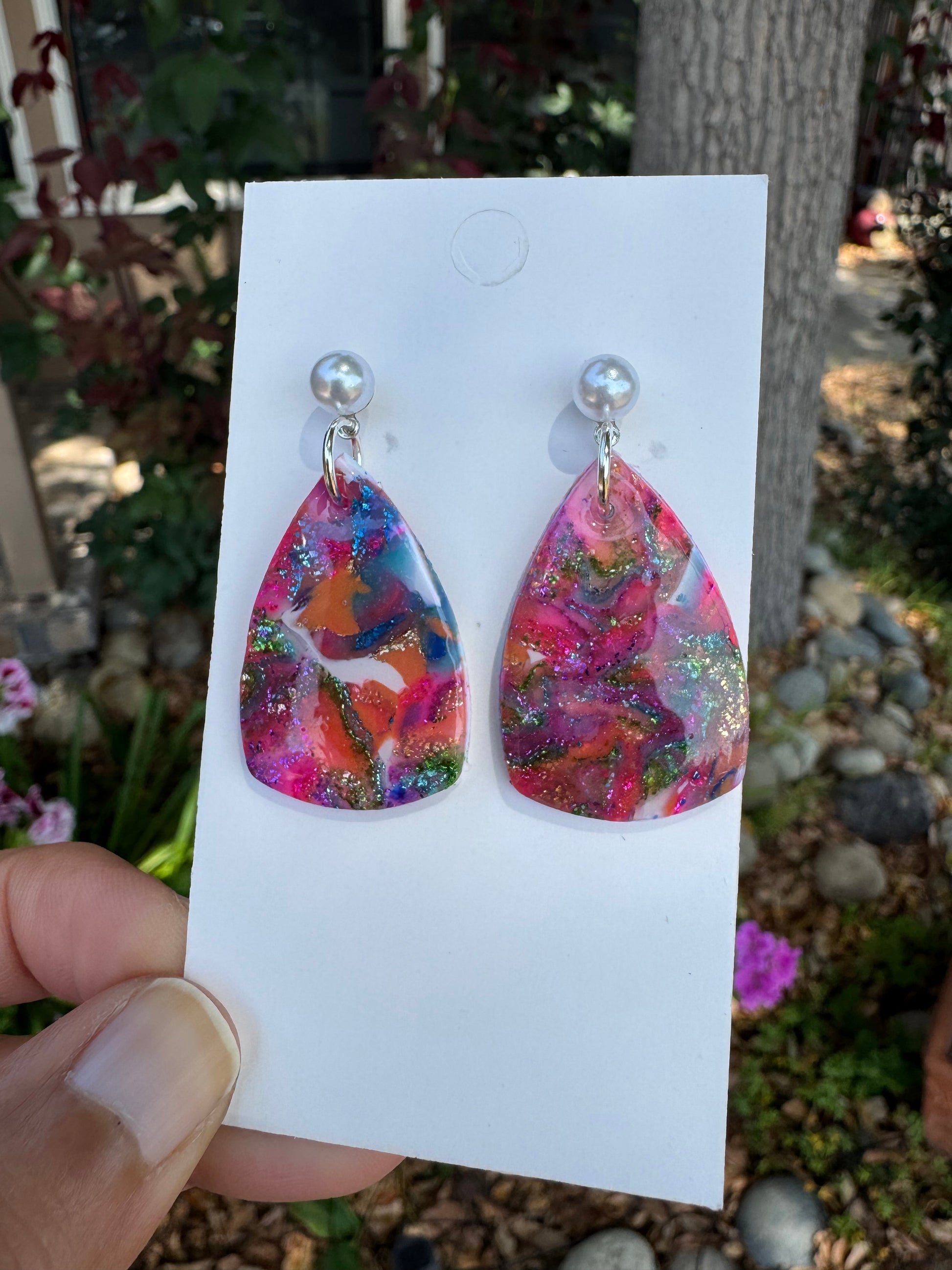 Earring posts are stainless steel with acrylic imitation pearl beads.