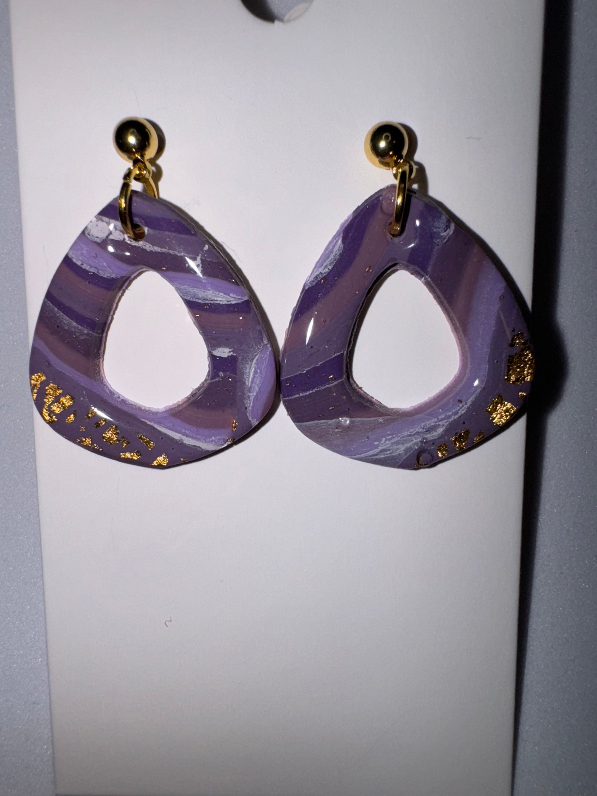 These earrings feature a subtle purple geode effect, with layers of deep violet and lavender hues swirled together.